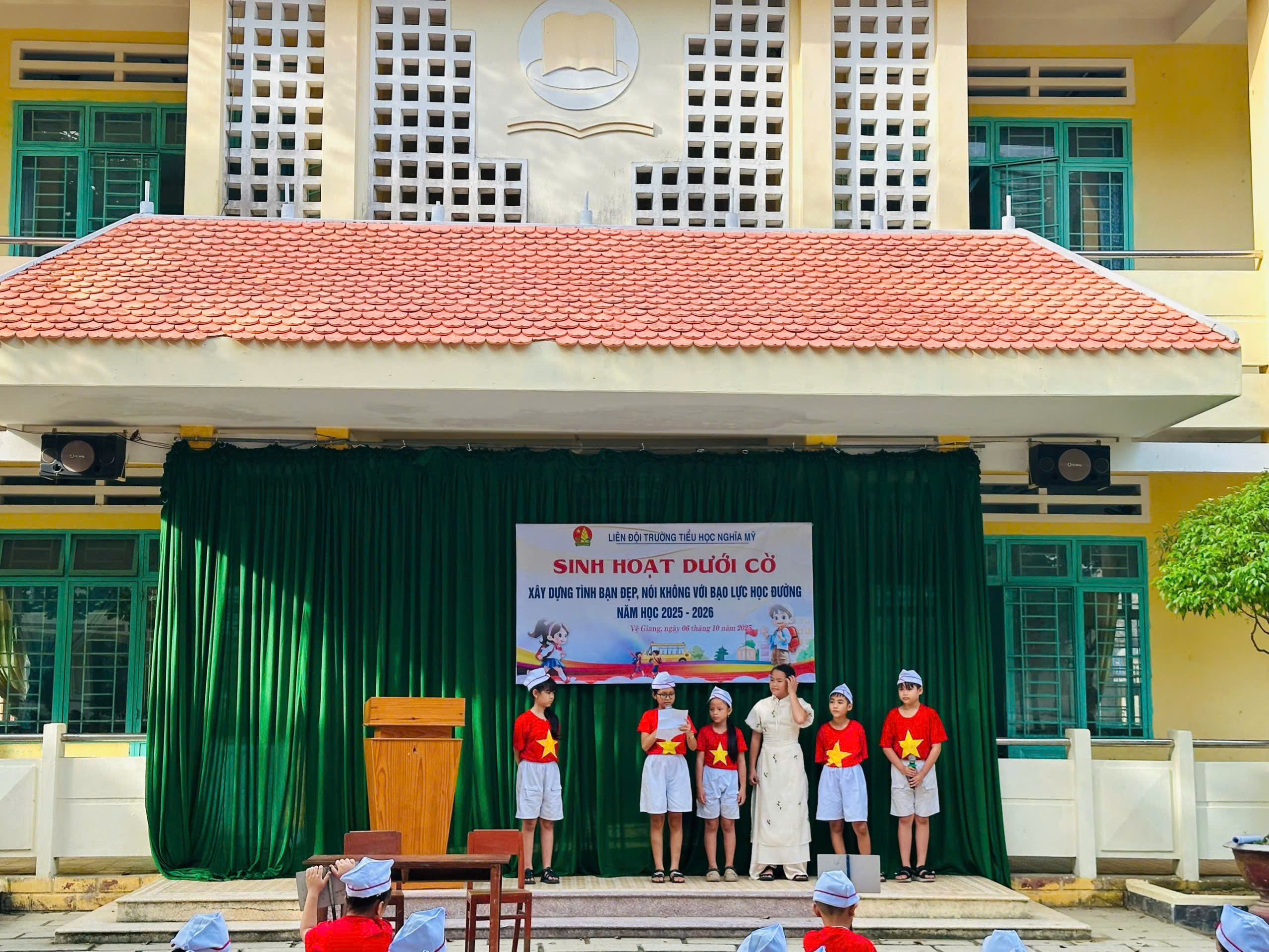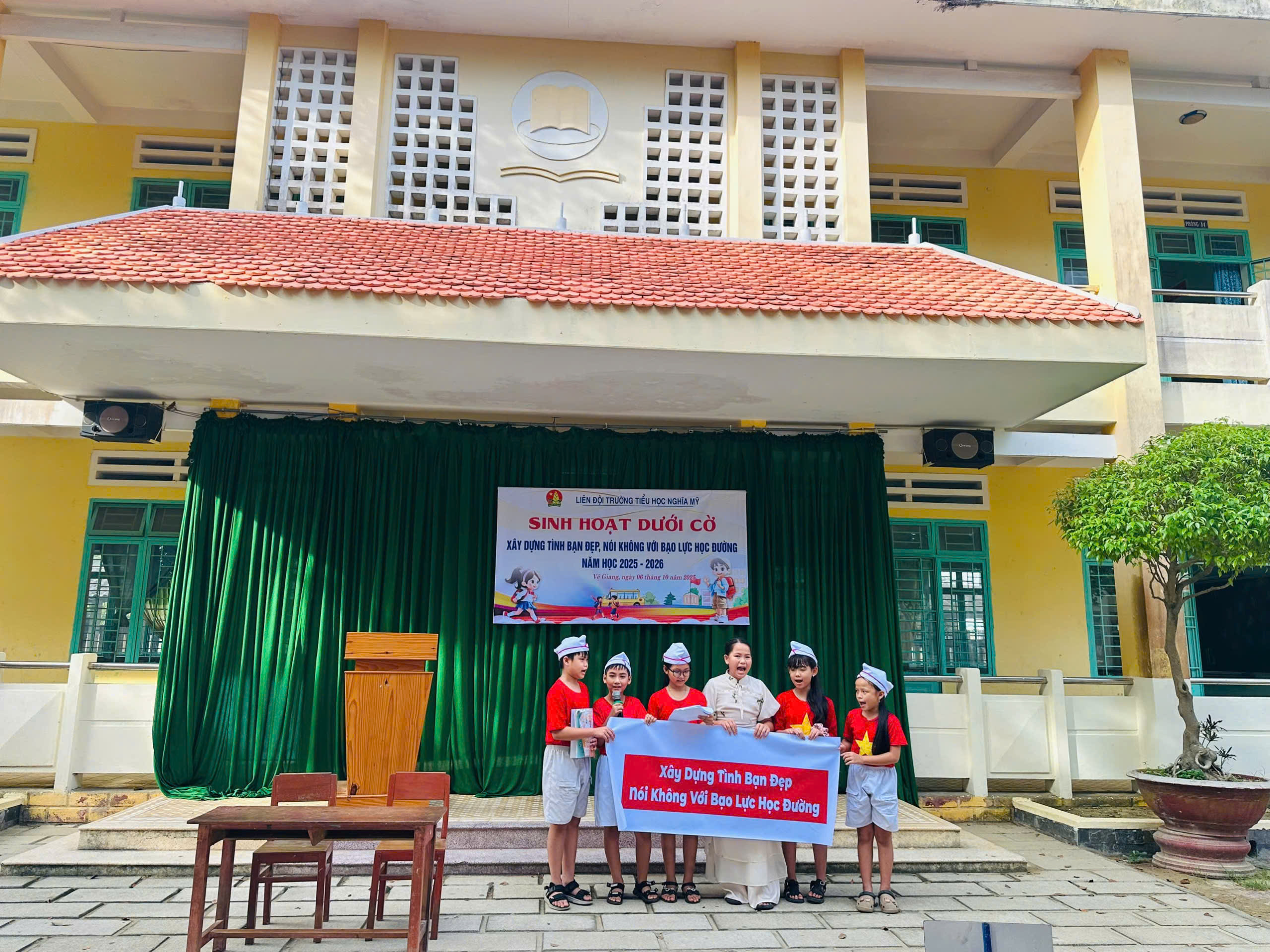 Vào 7 giờ, ngày 06/10/2025 tại Sân trường TH Nghĩa Mỹ, Liên đội trường TH Nghĩa Mỹ đã tổ chức buổi sinh hoạt dưới cờ “ Xây dựng tình bạn đẹp, nói không với bạo lực học đường” năm học 2025 – 2026.