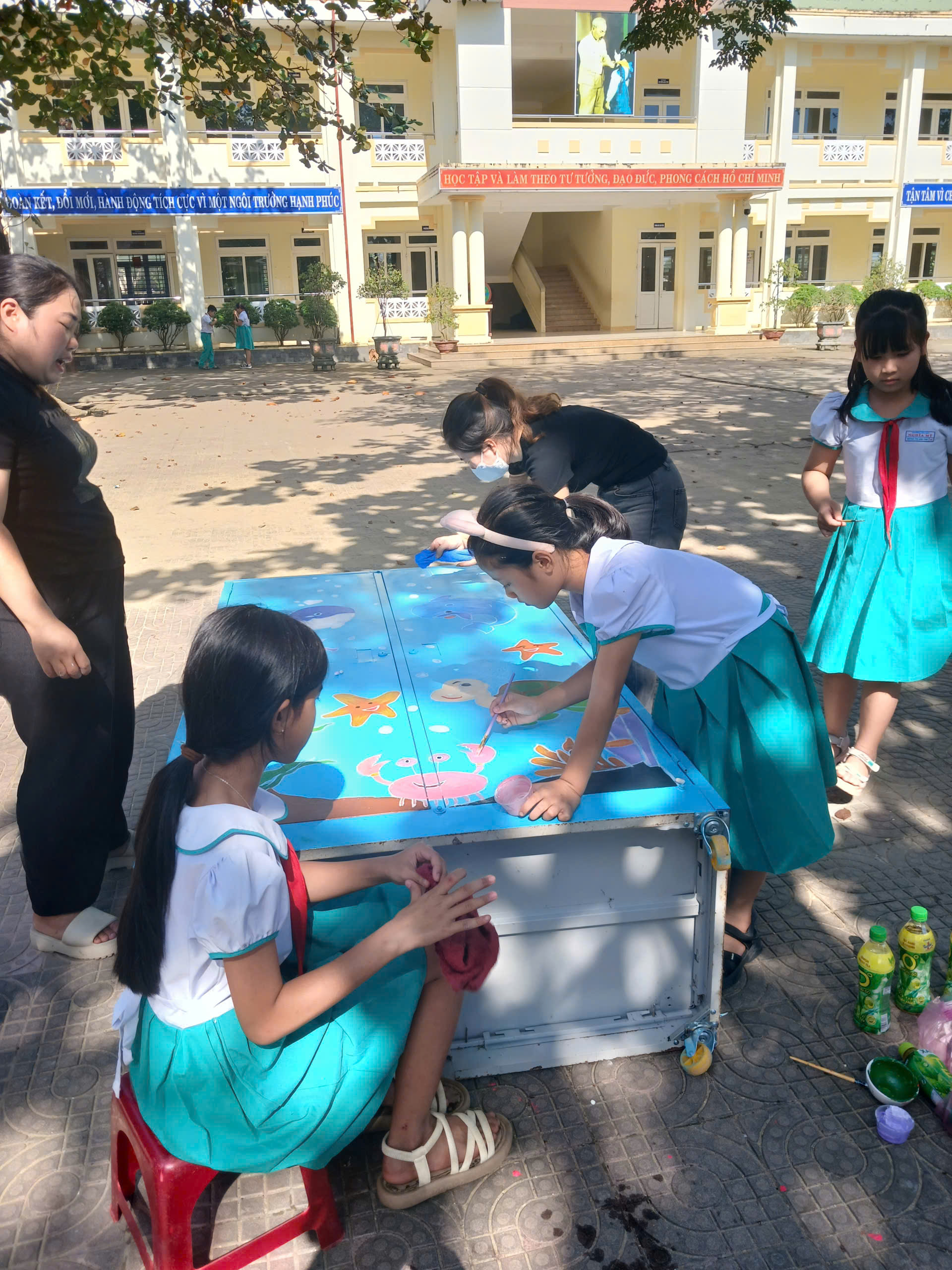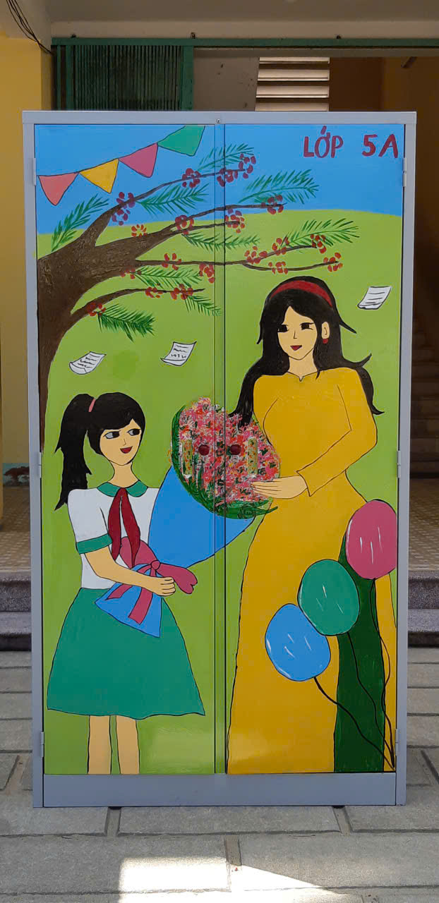 - Khối 4, 5: Vẽ trang trí tủ sắt đựng đồ dùng học tập của lớp bằng sơn và các loại màu.